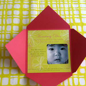 The "small but passionate" design studio, Pink Dot Press, does just that with unparalleled custom baby announcements. Owner and Chief Design Officer Kelley Lillien spends an average of three weeks working with each client on the design and review to make sure she is head-over-heels in love with the final product, which, if you check out her portfolio, is guaranteed to be a work of art.While the pricing varies with the work involved, let’s just say these aren’t the baby announcements you send out to your closest 1500 friends–Brangelina excluded.Get that email announcement out to your second cousins, but save the really special treats from Pink Dot for your inner circle. Oh, and a copy for the baby book too.- Julie