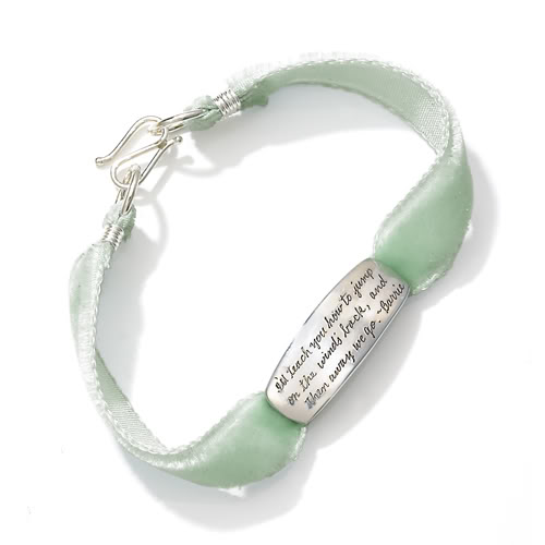 I am totally swooning over the outstanding children’s collection from San Francisco jewelry artist Jeanine Payer. Not to drop names or anything, but I can see why Julia Roberts and Hilary Swank are fans. You too will be smitten with the beautiful metalwork and the charming hand-engraved J.M. Barrie or Shakespearean quotes that adorns the pieces. (Seriously, who doesn’t like J.M. Barrie quotes?)