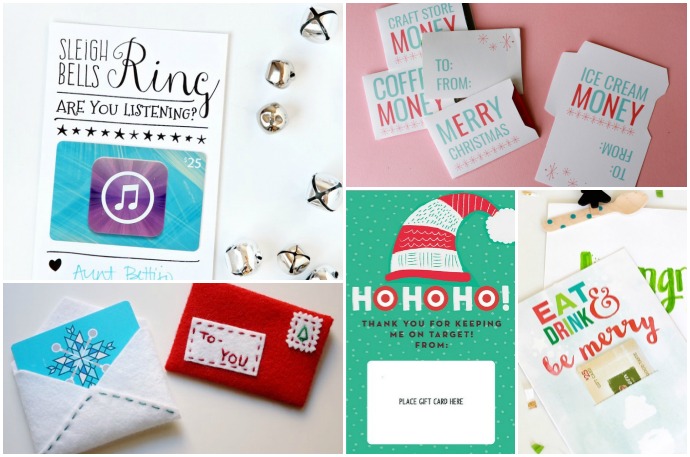 The free festive and printable gift card holders from Pretty Providence give you six different options depending on the card you’ll be tucking inside. There are holders designed for movie cards, craft store cards, coffee shops, and then the funny “Diet Coke money” card for someone who always seem to have one on their desk. Or, just print out a bunch of the general Merry Christmas gift card sleeves which are perfect for almost any kind of card. At least on Christmas.