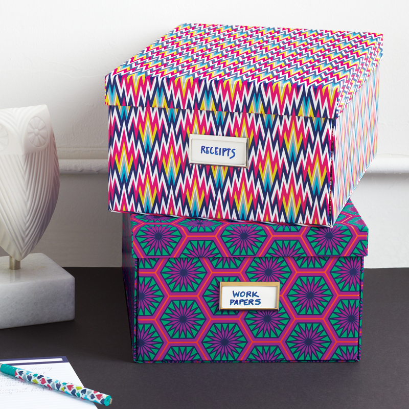 See Jane Work, a longtime favorite spot of ars for all things organization, has some great storage products and solutions for catching those wayward receipts, insurance forms, and other bits of essential accounting info that you haven’t yet digitized. Check out their file boxes category alone, for beautiful solutions from Rifle Paper, Jonathan Adler, and even those gorgeous pinkĀ Kate Spade nesting boxes we recently featured in our post about spring cleaning your desk for tax time.