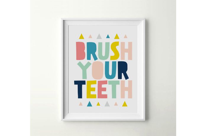 There’s something so smart and simple to place a fun visual reminder right on your wall. You’ll find tons of options over at Etsy that look more like modern art, than a propaganda dental message strategically placed to bug your kids.